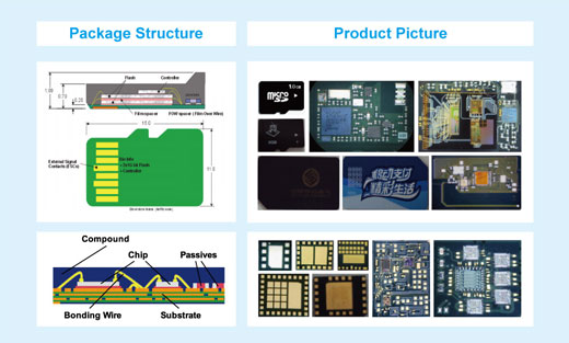 SiP系統(tǒng)集成封裝技術(shù),已成功開發(fā)了RF-SIM;Micro SD;USB;FC-BGA;LGA module等一系列產(chǎn)品。